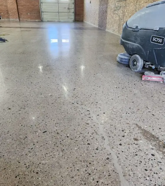 We use industrial-grade polishing equipment and diamond abrasives to achieve a mirror-like shine while increasing durability and resistance to wear. Perfect for garages, showrooms, warehouses, and even modern homes, polished concrete offers a clean, high-end look that’s both functional and stylish.